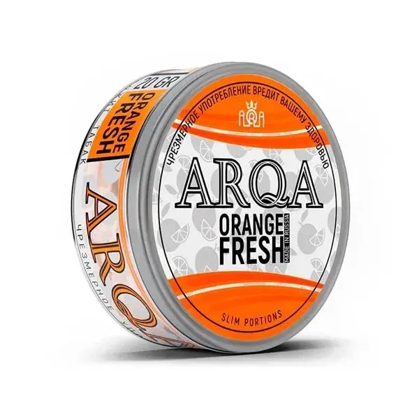 ARQA Апельсиновый фрэш - продукт оранжевого цвета, это жевательная бестабачная смесь. Употребление таких смесей практически полностью исключает появление онкологических заболеваний. Никотин использующийся в изготовлении снюса проходит многократные очистки, благодаря этому исключаются из состава опасные компоненты. Каждый из вкусов имеет различную крепость, но основной крепостью является 70 мг.