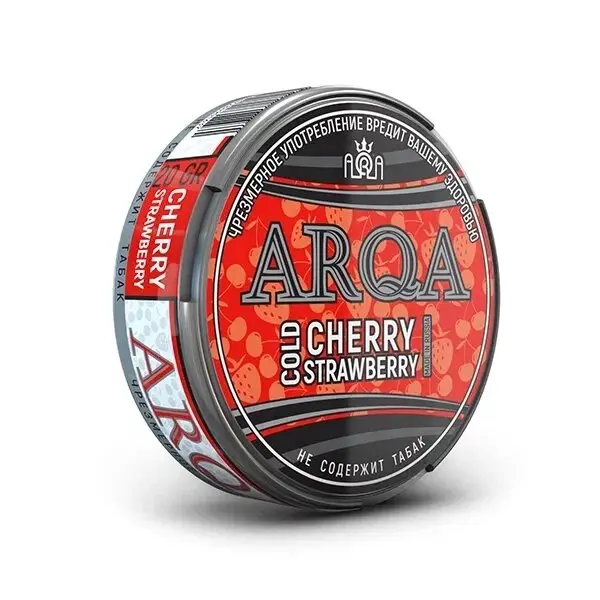 Arqa холодная вишня и клубника - продукт красного цвета цвета, это жевательная бестабачная смесь. Употребление таких смесей практически полностью исключает появление онкологических заболеваний. Никотин использующийся в изготовлении снюса проходит многократные очистки, благодаря этому исключаются из состава опасные компоненты. Каждый из вкусов имеет различную крепость, но основной крепостью является 70 мг.