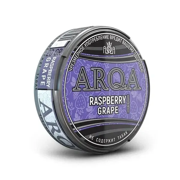 Arqa Сок малины и винограда - продукт виноградного цвета, это жевательная бестабачная смесь. Употребление таких смесей практически полностью исключает появление онкологических заболеваний. Никотин использующийся в изготовлении снюса проходит многократные очистки, благодаря этому исключаются из состава опасные компоненты. Каждый из вкусов имеет различную крепость, но основной крепостью является 70 мг.
